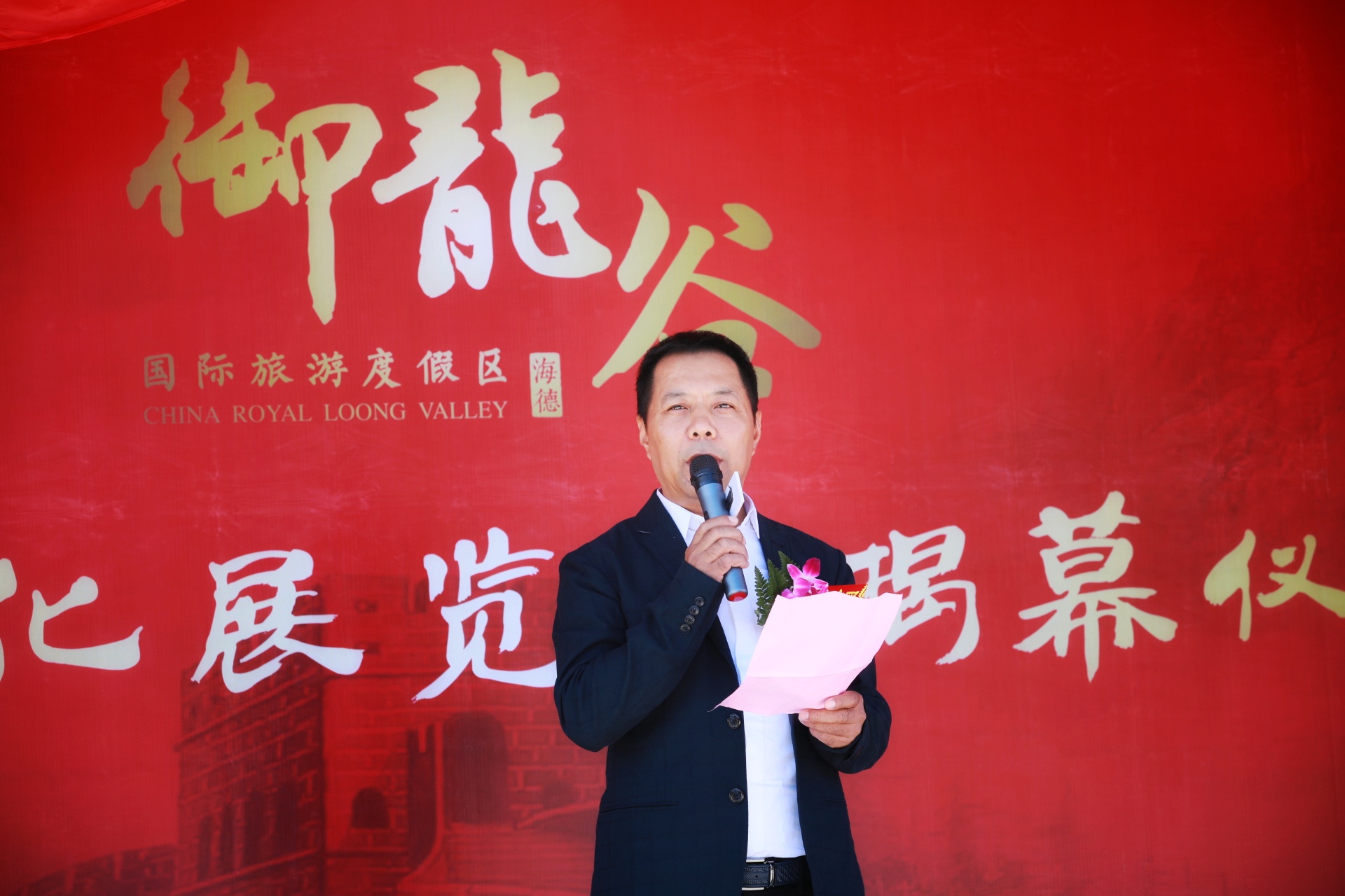 首先進(jìn)行的是御龍谷行宮文化展覽館揭幕儀式,海德集團(tuán)董事長馮祿海代表本次活動的主辦方致歡迎辭,馮總表示御